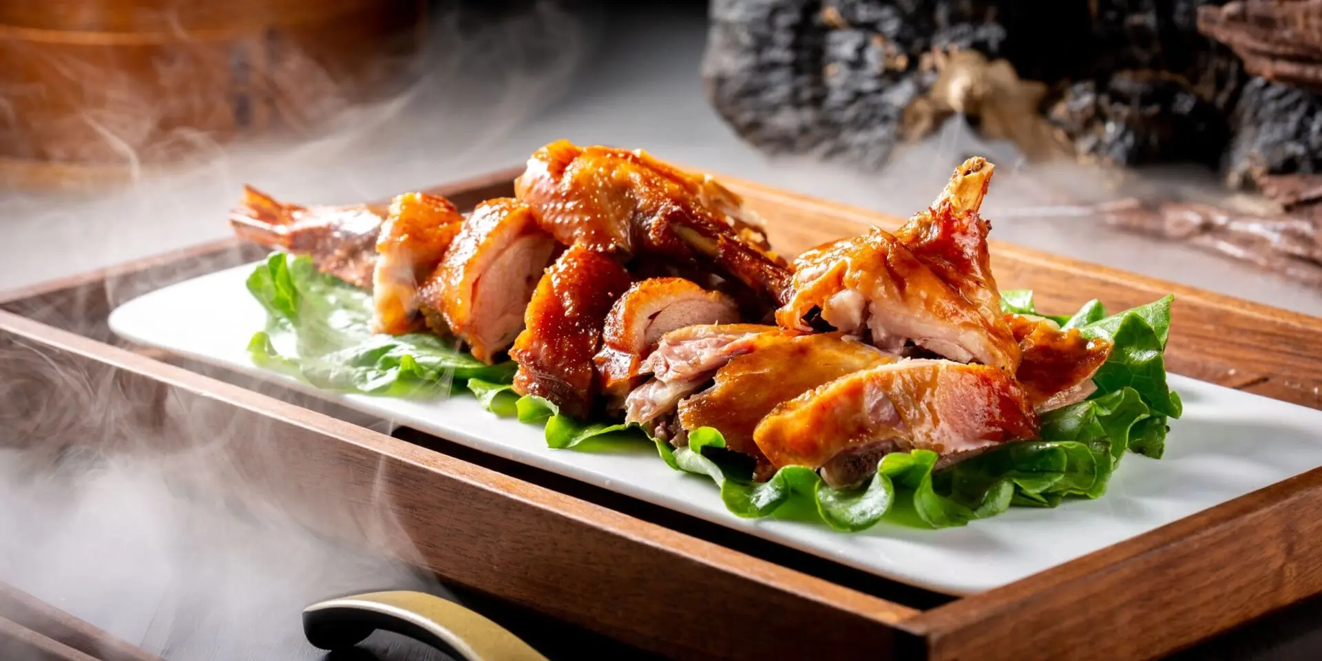 「從金牌燒鴨的酥脆外皮,到醬皇燒鵝的豐腴油香,我們追求極致的口感與風味平衡。貴妃豉油雞嫩滑多汁,豉油皇乳鴿皮脆肉嫩,脆皮燒肉層次分明——這裡不只是一頓飯,更是一場粵式燒臘的味覺之旅。我們以匠心守護傳統,用美味傳遞誠意,讓每一口都成為難忘的享受。」